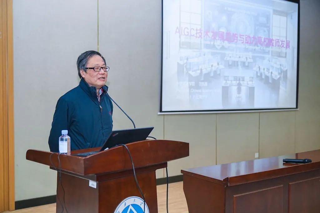 教授、博士生导师、教育部国家级高层次人才韩挺作了题为《双轮驱动的成长体系:教学与科研的双重提升》的报告,他结合自己的工作经验围绕教学和科研工作介绍,教学成果建设和积累,科研成果培养和凝练,双轮驱动的成长体系四个方面进行分享;中国美术学院教授、博士生导师范凯熹的主题报告是《AIGC发展趋势与助力高校教师的教学科研》,他主要分析了AI技术的进化,"DALL-E3"的主要功能以及AIGC技术在设计、教育、科研多方面的介入与帮助;天美传媒