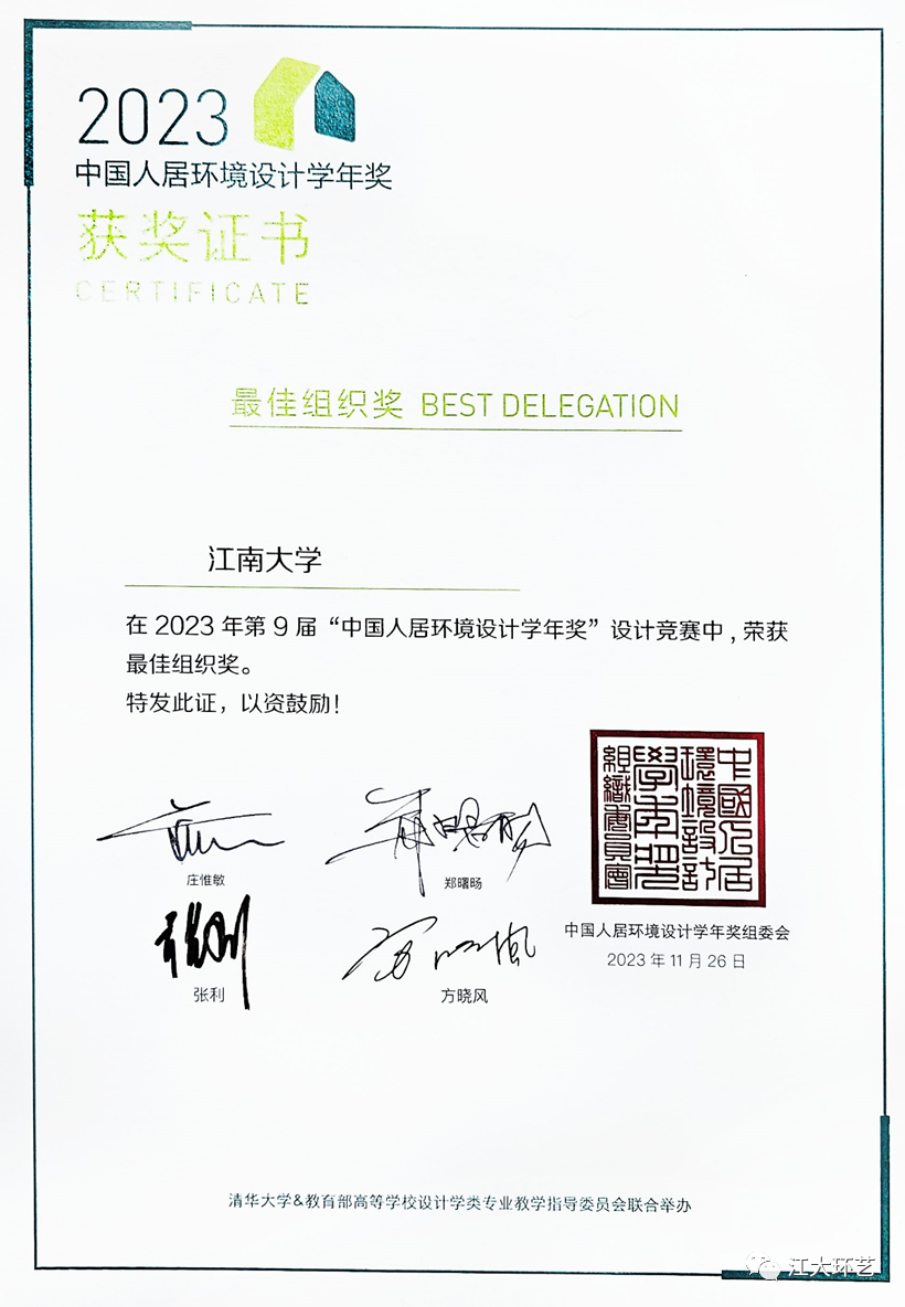 “中国人居环境设计学年奖”由清华大学和教育部高等学校设计学类专业教学指导委员会联合主办,由教育部高等学校建筑类专业教学指导委员会所属:建筑学专业教学指导分委员会、城乡规划专业教学指导分委员会、风景园林专业教学指导分委员会协办,至今已成功举办九届,并成为人居环境学科领域内具有重要影响力的奖项。本届竞赛共收到来自7个不同国家和国内33个地区的3016件有效作品。有482所院校参与,其中有相关学科的985、211高校参赛率为100%。竞赛分为“城市设计”、“建筑设计”、“景观设计”与“室内设计”四大专业类型,通过初审、复审和现场终评,共评出室内设计金奖2项、银奖7项;景观设计金奖2项、银奖9项;建筑设计金奖3项、银奖6项;城市设计金奖3项,银奖8项。