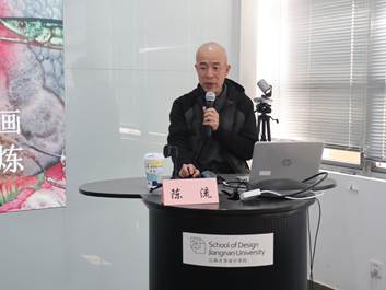 2、讲座内容:陈流老师以《话·画》为题,结合自身经历和创作经验,讲述了《礼赞大地》系列、《浮生若梦》系列、《东奔西走》系列、《葳蕤生香》系列、《炸鱼》系列、《人物创作》等水彩作品。以独特的视觉表达、创作思路、构成形式,展现了“细节”和“质感”在作品中的作用和对表现的意义,注重对细节与质感的传递。陈流老师的艺术语言融合学院派写实艺术与边疆独特的民族艺术传统和地理景观,其艺术思想贯穿古今、融汇中西,将中国传统民间艺术、工笔重彩、中西油画、水彩、壁画、图案、漆画乃至装饰雕塑融入到艺术创作中,彰显不同艺术家之间与众不同的鲜明个性。