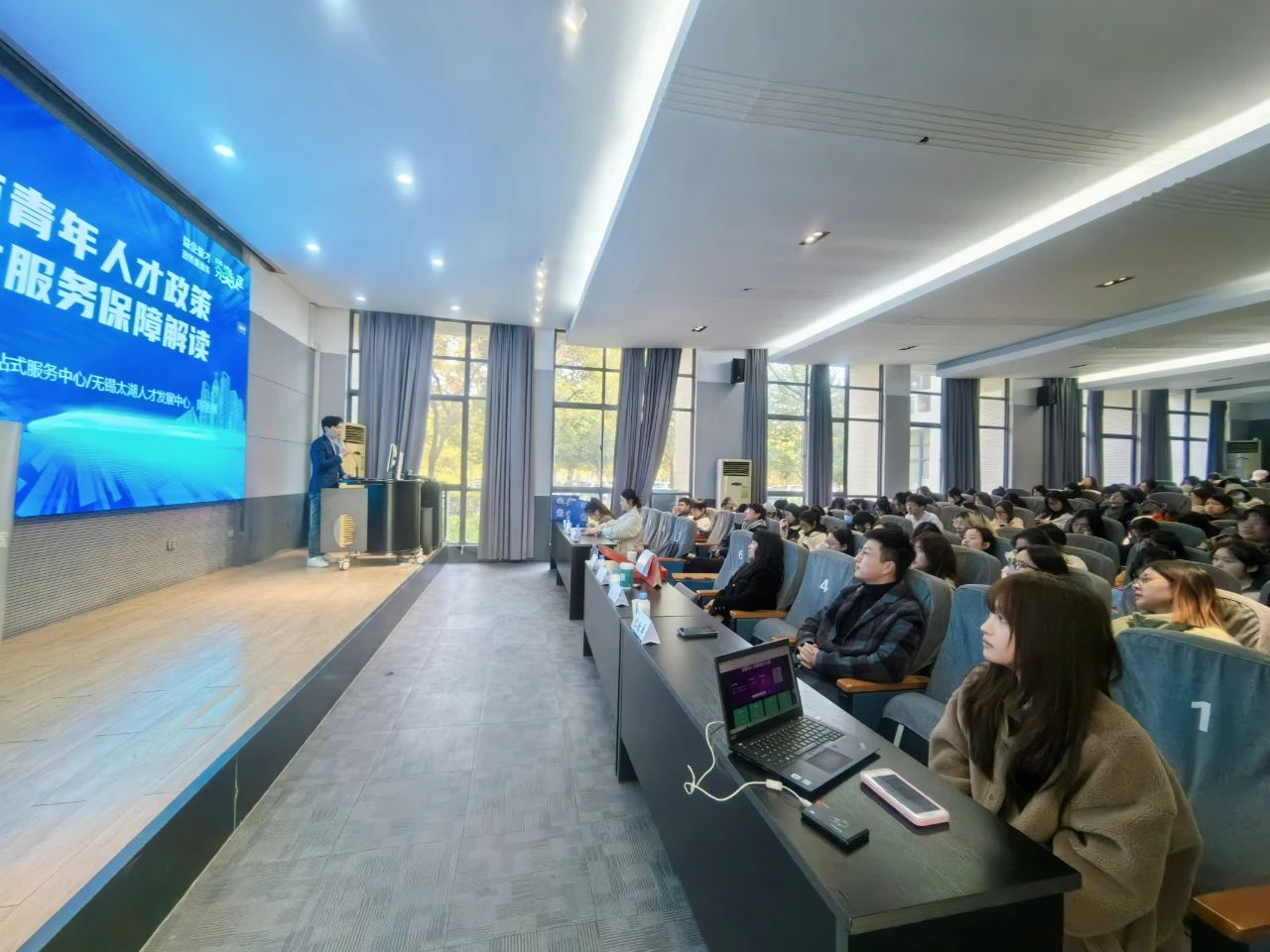 活动现场,近200名优秀大学生参加了本次活动。无锡市高层次人才一站式服务中心周驰刚介绍了无锡人才分类认定政策,并就无锡市青年人才政策及人才服务保障进行了现场解读,向江大学子们展示了无锡在引育青年人才方面所做出的努力,也希望更多的优秀学子能够发挥自身的专业技能,在无锡就业创业。