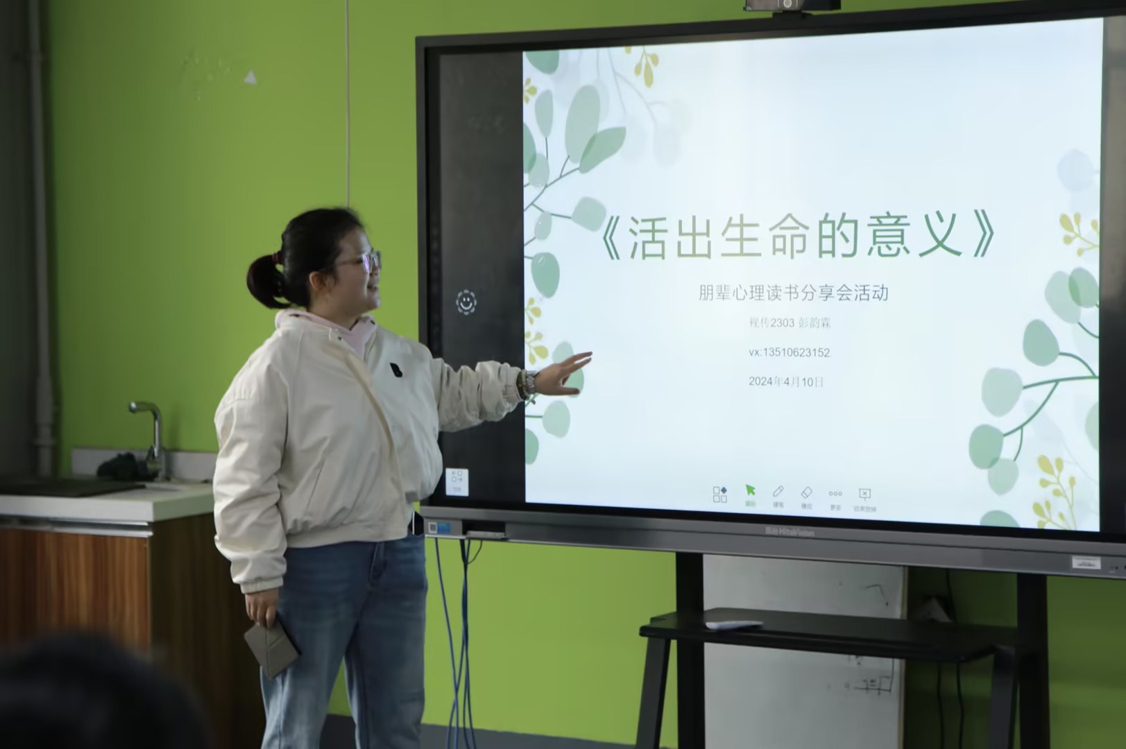A205热烈开展。十多位同学参与了这次活动。活动伊始,冯志远老师首先对书本《活出生命的意义》进行了导读,启发同学对生命的意义展开思考。接下来,彭韵霖同学从书本简介、原文精选、心得感想三个方面全方位介绍了这本书籍,使同学们了解意义疗法的基本知识,了解追寻人生意义的三种途径。