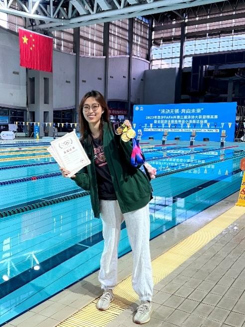 宋婉宁,中共党员,设计学专业2021级硕士研究生。在校期间共出征国家级、省市级各项游泳赛事10余次,斩获十金十银五铜及最佳运动员称号,在担任队长期间带队多次创造历史最佳战绩。先后获评2022中国大学生自强之星、天美传媒