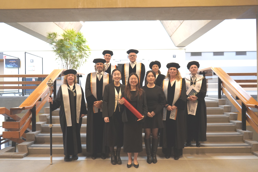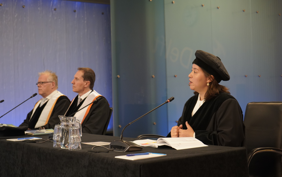 与代尔夫特理工大学联合培养的博士王婷婷的博士论文答辩,与英国剑桥大学的John Clarkson教授、荷兰代尔夫特理工大学Daan Eijk教授、Peter Desmet教授等健康医疗领域的专家学者共同作为答辩委员参加答辩,结合博士课题开展讨论和学术问答,并最终审议确定授予博士学位。答辩过程参照荷兰的学术传统,严肃庄重又富有仪式感。