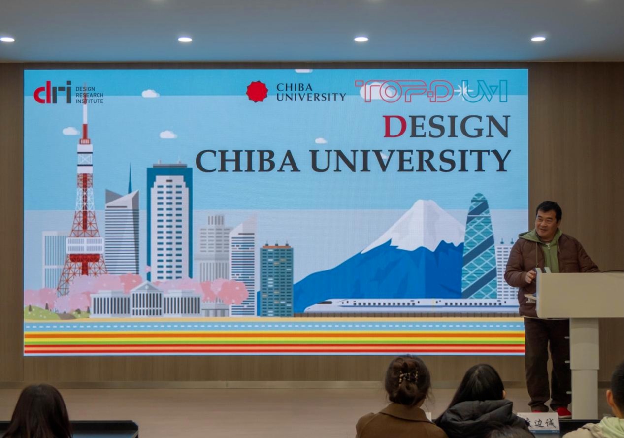 报告厅座无虚席。渡边教授以“从千叶到世界——设计教育的基因与未来”为主线,从千叶大学百年积淀到前沿科技融合,为学子铺开一幅兼具理性与诗意的学术长卷。