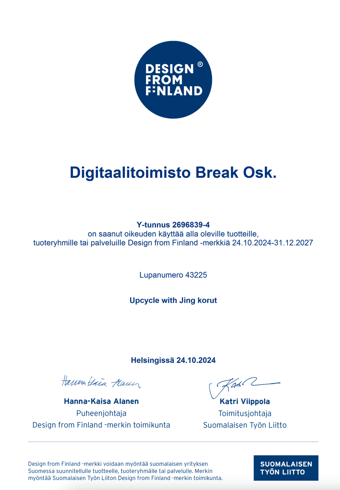 品牌获得Design from Finland认证