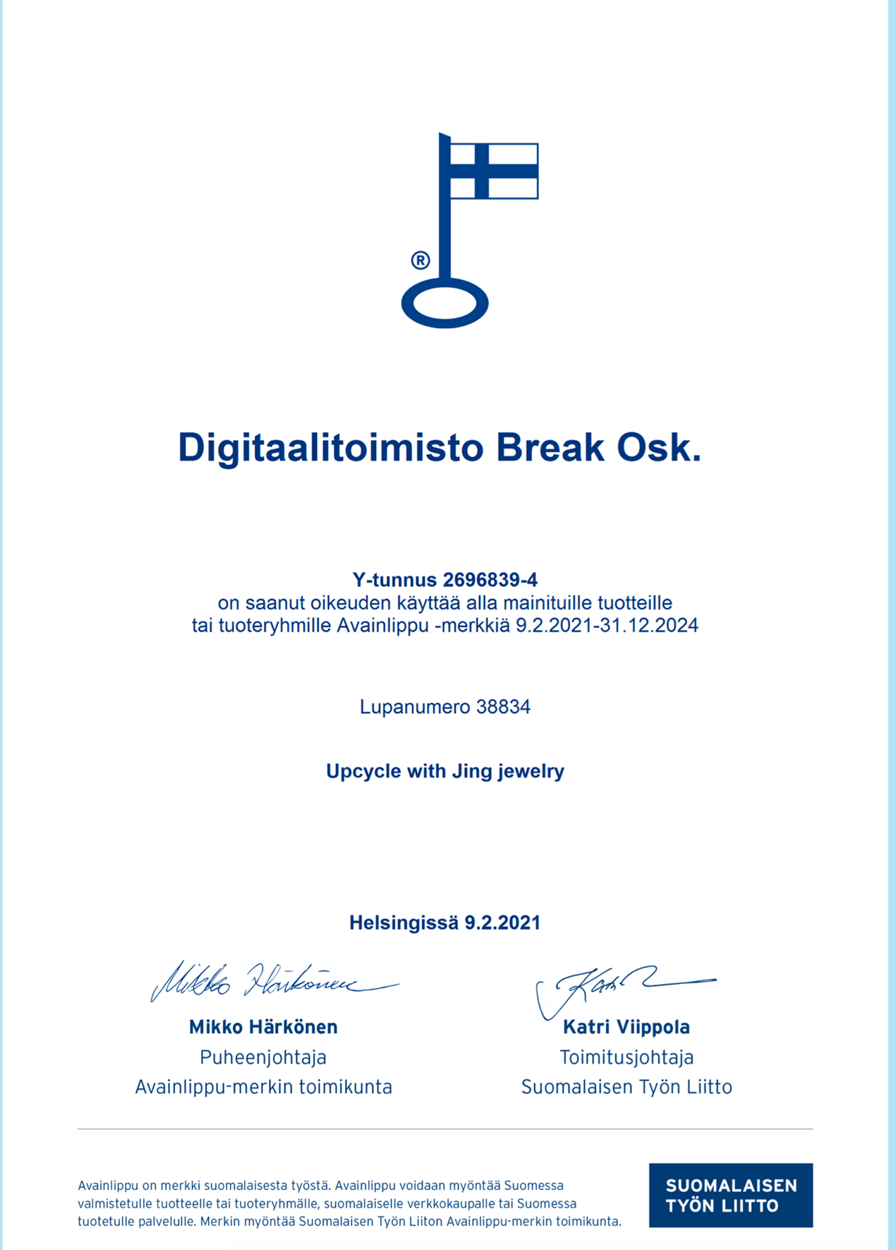 品牌获得芬兰钥匙旗(Avainlippu)认证