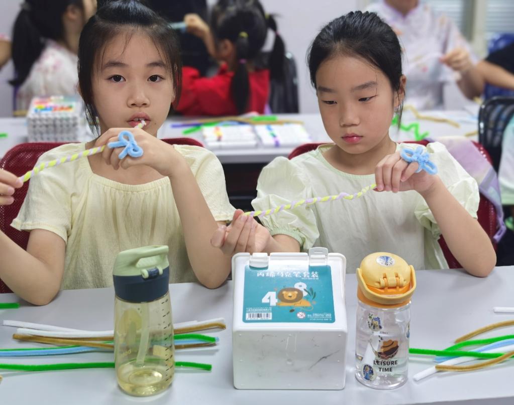 随后,志愿者们开始手把手地教孩子们创作属于自己的手工艺品。孩子们专注地投入到创作中,教室里充满了欢声笑语。在这个快乐的过程中,孩子们不仅学会了制作手工艺品的技巧,更领略到了“艺术+环保”的奇妙之处,明白了环保的重要性和艺术的魅力。