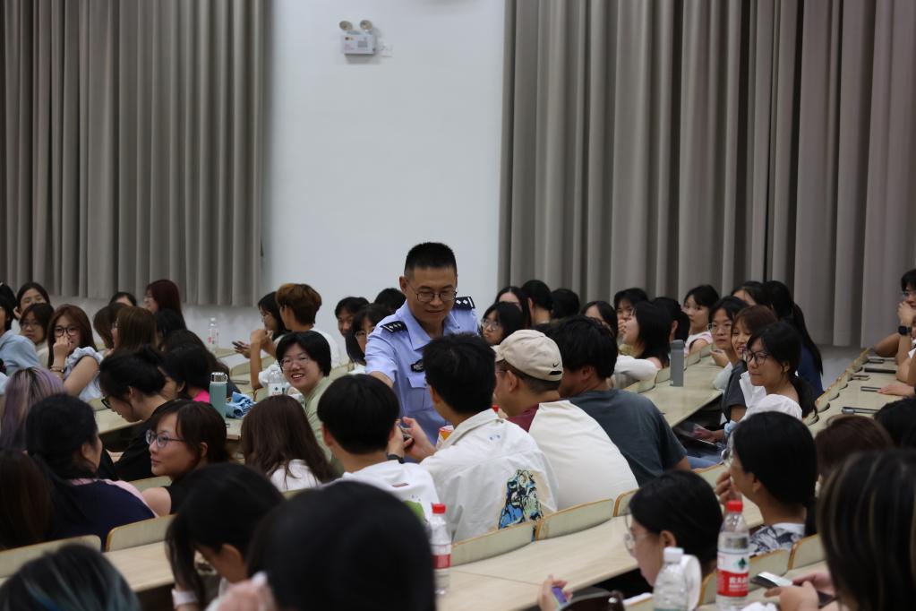 动员环节结束后,无锡市滨湖公安分局雪浪派出所康警官为同学们带来了一场实用的反诈安全教育讲座。结合真实案例,康警官深入剖析常见诈骗形式,传授防范技巧,为同学们筑牢安全意识防线。