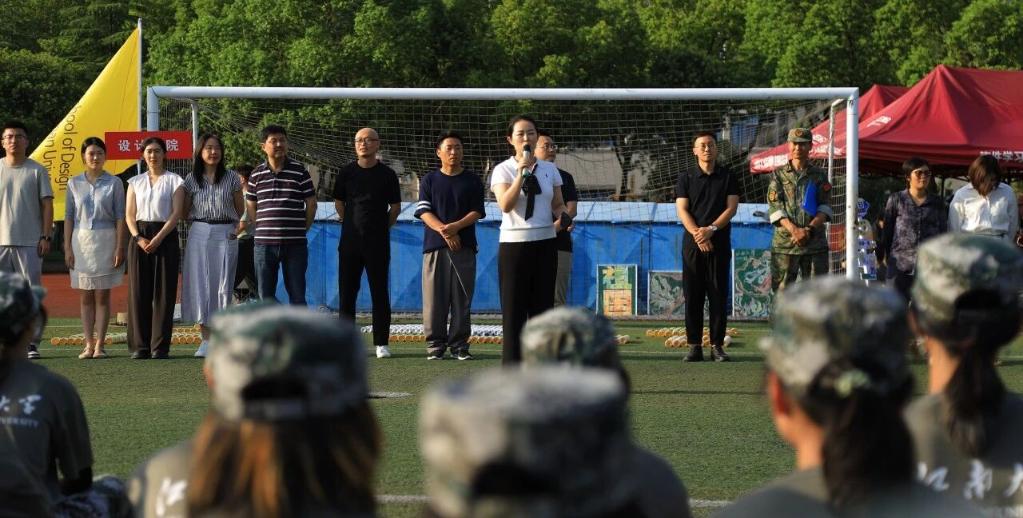 党委副书记、副院长江琳娜老师为同学们送上殷切寄语。她充分肯定了同学们前期训练中展现出的坚韧意志和优良作风,鼓励大家将军训中养成的优秀品质带入今后的学习与生活,在设计艺术的攀登之路上追求卓越、勇于创新。学校的领导与老师们始终心系训练场上的学子。活动的最后,各位领导与老师为同学们分发了精心准备的慰问品。一份份清凉,一句句问候,为刻苦训练的同学们注入了满满能量。