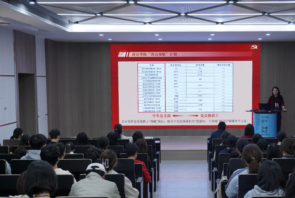 “青山领航” 计划,系统阐释了该计划以强化学生党支部标准化建设为抓手,以推动党建工作与人才培养深度融合为核心,致力于为党组织输送更多 “有理想、敢担当、能吃苦、肯奋斗” 的新时代青年力量的核心内涵。她指出,要充分发挥党员领导干部、党员教职工在教书育人、管理育人、服务育人中的先锋模范作用,切实加强和改进我校大学生思想政治教育工作,助力青年学生党员成长为 “思想红、专业强、情怀深” 的设计领域复合型骨干人才,为行业发展与国家建设注入青春动能。