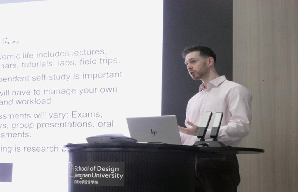 10月30上午,英国罗素大学集团创始成员——利兹大学(University of Leeds)代表国际办公室国际合作官员 Jason Neal 先生来我院访问,成功举办专场招生宣讲会。会议由国际交流秘书刘荀主持,2024级辅导员纪欣卓共同参会,百余名设计学子一同聆听这场内容翔实的宣讲。
