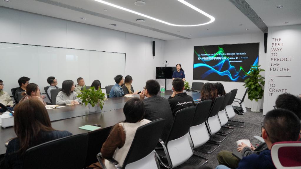 美的集团家用事业部设计负责人详细介绍了企业在家电出海设计需求、海外用户体验设计以及可持续设计领域的最新实践。周敏宁教授就 “未来智慧家居生态设计”与“AI辅助设计及参数化设计技术流程”向美的设计部全体设计师做汇报演讲,并就校企联合创新工作室、学生实训基地共建等事项进行进程汇报。