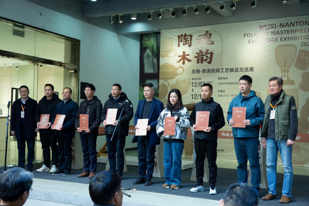 中国紫砂艺术设计研究院、宜兴紫砂九隽陶艺有限公司协办的“陶魂木韵”——无锡·南通民间工艺精品交流展,在天美传媒