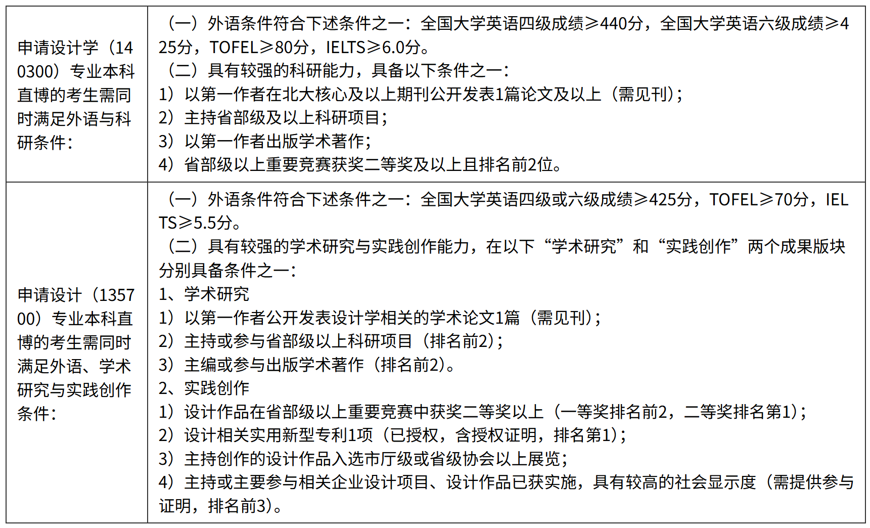 (六)申请本科直博的考生除以上要求还需满足相关要求: