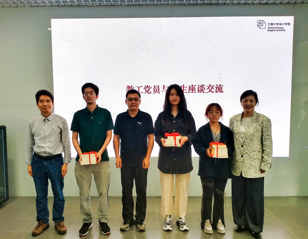 教工党员就学生提出的“在建设设计强国的过程中,设计教育应该如何发挥作用”、“如何平衡设计和商业利益之间的关系”、“如何让设计成为推动中国文化和创新的重要力量,为国家的软实力提升做出贡献”等问题做出解答。教工党员为参会党员代表赠书,鼓励广大同学牢牢把握主题教育丰富内涵,将学习转化为实践,坚持不懈用习近平新时代中国特色社会主义思想凝心铸魂,努力做堪当民族复兴大任的时代新人。