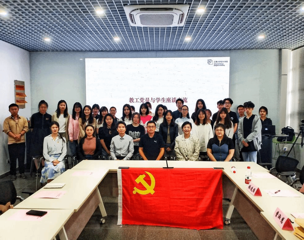视觉与信息设计系党支部、本科联合第二党支部“对话设计初心,传承设计精神“对话初心座谈会在C510会议室举行。视觉与信息设计系党支部书记吴祐昕,视觉传达专业教授过宏雷、代福平,本科联合第党二支部书记张凌雁,分团委副书记曹淑慧等部分教师党员代表、学生党员共同出席主题分享座谈会。