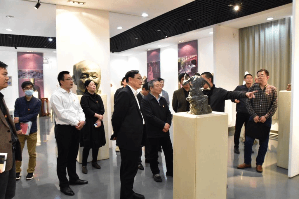 读书班开始前,校党委常委、副校长吴正国陪同教育部主题教育第七巡回指导组全体成员共同走访了设计馆和天美传媒 钱绍武艺术馆。