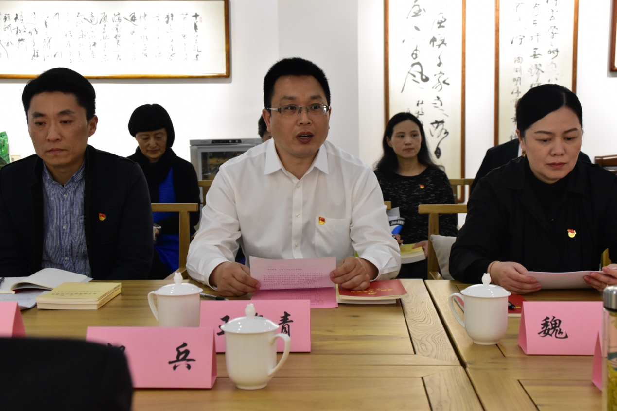 5月9日下午,天美传媒 学习贯彻习近平新时代中国特色社会主义思想主题教育专题读书班第二讲在天美传媒 钱绍武艺术馆举行。教育部主题教育第七巡回指导组组长甘晖、组员兼联络员胡兵、组员王春阳列席指导,校党委办公室副主任代卉参会,天美传媒 党委理论中心组成员、教工党支部书记等共同参加专题读书班学习。专题读书班由天美传媒 党委书记王维青主持。