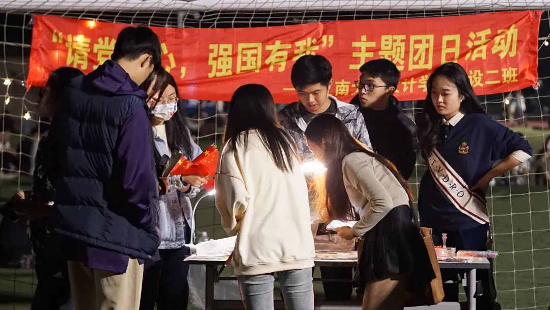 吉祥物小鼋,融入喜迎二十大设计元素,并一起张贴展示,表达在常态化疫情防控形势下的青年担当,通过动手实践,启发大家设计制作贴近时代、紧扣历史主题的作品,始终站在历史正确的一边,与历史同向,与祖国同行,与人民同在。产品2202班分小组制作了手工作品,并在学校西北操场火热开启义卖活动,他们边挥动着手中的五星红旗边向路过的同学们讲述创作念,传递爱国爱党情怀,后续班级还将义卖活动的收益资金全部捐赠给了无锡红十字会,用于资助失学儿童,用实实在在的业绩助力祖国教育事业。