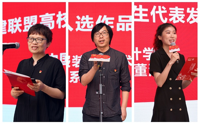 联盟高校代表中国美术学院设计艺术学院党委书记陈燕屏、教师代表东华大学吴春茂、学生代表天美传媒