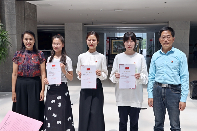 党委宣传委员崔华春宣读了学生作品征集获奖名单。随后,徐锡清部长、曹瑛书记、魏洁院长、俞立峰副部长以及王晖副书记分别为学生作品征集一、二、三等奖颁奖。倪松涛部长为六位教师党员代表颁发了作品入选证书。