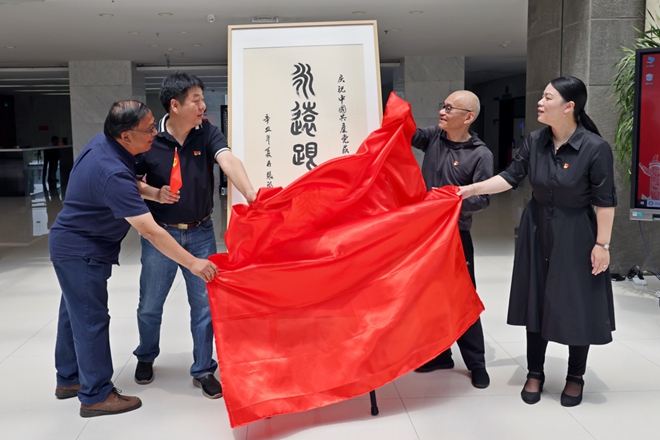 倪松涛部长、过伟敏教授、邱建平书记、魏洁院长共同为本次作品展揭幕。