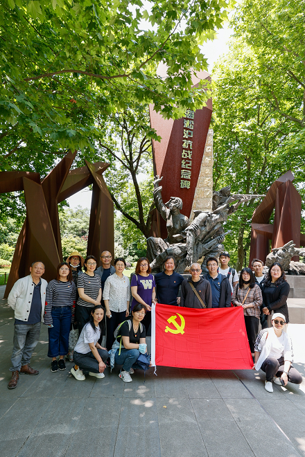 5月22日上午,两个支部全体党员和入党积极分子首先前往上海淞沪抗战纪念馆开展“共忆往昔、行走宝山、挑战未来”主题党日活动。上海淞沪抗战纪念馆是全国唯一反映两次淞沪抗战的专题纪念馆,坐落于昔日上海军民浴血抗战的主战场——宝山境内,被国务院命名为首批国家级抗战纪念设施(遗址),是上海市爱国主义教育基地、上海党史教育基地。全体党员和入党积极分子认真参观了《血沃淞沪——淞沪会战主题展》,仔细聆听了讲解员对淞沪抗战历史事件及涌现出的优秀前辈的介绍,参观了包括“中国抗日战争的爆发”、“一·二八淞沪会战”、“八一三淞沪会战”、“上海抗日救亡运动的高潮”等七个部分组成的大量文物、史料、图片、文书等珍贵史料,运用声、光、电等高科技、新技术展示方式与交互手段,形象生动地反映了中国军队和上海人民在淞沪抗战以及十多年抗日斗争中同仇敌忾,奋勇杀敌的英勇史迹。通过展览大家深刻感受到了上海人民曾经受的血与火的锤炼,认识到了一批批优秀的共产党员和英雄儿女。历史不该被遗忘,一部淞沪抗战革命史告诉我们,胜利来之不易,我辈尤当珍惜。