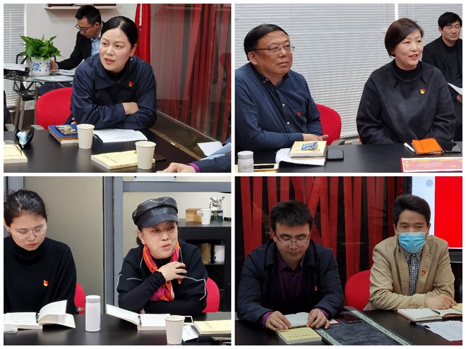 在支部成员交流发言环节,魏洁院长作为支部党员首先发言,她首先感谢陈卫校长参加支部活动,结合近期开展的党史学习活动,特别是习近平总书记赴清华大学考察时的讲话精神,她指出,党史学习、重温誓词是让每一个共产党人不忘初心,牢记使命;当下是设计学科发展的最好时机,无论是国家大背景还是学校的顶层设计,都十分重视设计学科的发展,设计学科要紧跟时代发展,强化艺术与设计在新时代服务国家社会经济发展、服务人民美好生活的重要使命与担当,学科交叉相促进,艺术技术相融合,把握大势,敢于担当,善于作为,为服务国家富强、民族复兴、人民幸福贡献力量。原支部书记代福平老师在发言中表示,学党史、悟思想、办实事、开新局,党史学习教育的十二个字,是每一位党员在学习中必须要牢记和践行的,学习党史,有助于我们回望入党誓词,牢记初心使命,在学习和深化的过程中不断践行我们党全心全意为人民服务的宗旨,不断坚定理想信念。王安霞教授在发言中表达了作为一个老党员的入党初心,分享了在党史学习教育过程中,特别是近日对总书记到清华大学考察讲话的学习中感受到的设计学科发展的鼓舞和振奋。