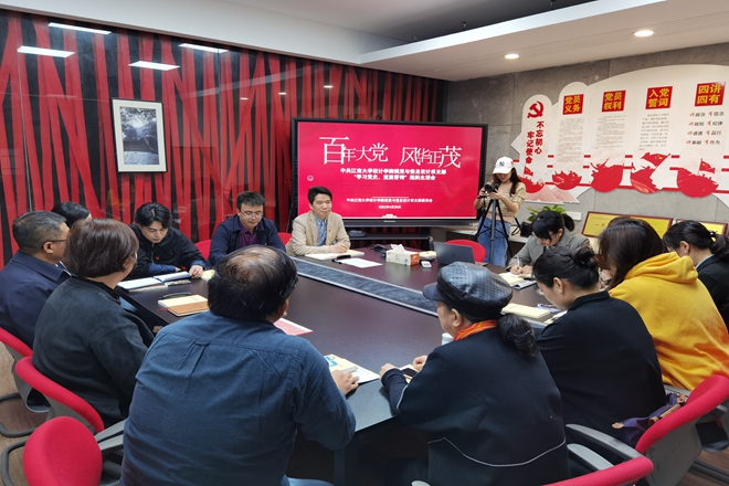 的渊源和联系,对支部活动的内容设计表示赞赏,他指出,通过《在党旗下》的视频,共同回顾党的百年征程和国家从弱到强的历程,一起在党旗下重温入党誓词,对于每一位党员都有非常强烈的理想信念感召力。他表示,学党史,在今天的这个时代具有重要的历史意义,作为这个新时代的建设者,我们要居安思危,不忘历史,我们的党百年来能取得如此成就,靠的是艰苦奋斗的精神,在新时代要创造更大的成就,重要的是做好我们自己的事情,在科技教育等领域做好发力。教育要解决民生问题,解决国家的战略需求问题,解决卡脖子问题,自然科学是其中一个板块,设计也是非常重要的环节,学校对于设计学科也寄予厚望。我们身处这个伟大时代,大到学科,小到个人,每个人都要做好自己的事情,为国家为人民做贡献。
