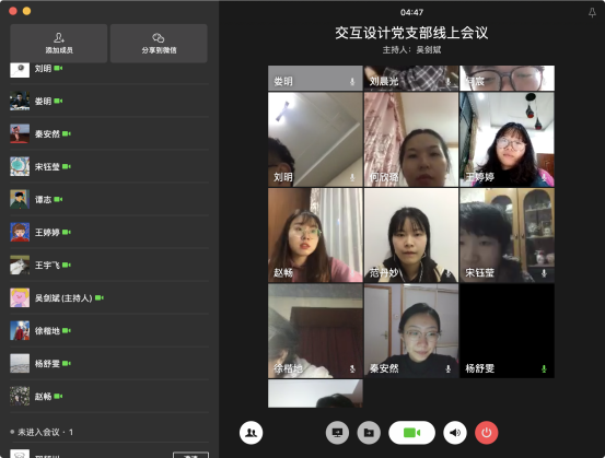交互设计党支部组织党员精心组织开展云党课,认真学习新型冠状病毒感染肺炎相关政策文件,深刻领会习近平总书记系列讲话精神,正确认清当前疫情形势,明确设计学子肩负的时代重任,既强调居家隔离,又强调加强科研。