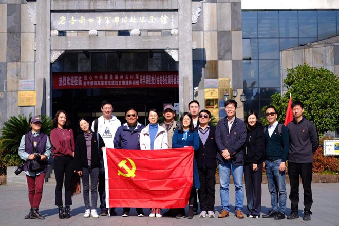 工业设计党支部党员和积极分子在书记陈嬿和系主任邓嵘带领下前往有着悠久革命历史的红色沃土——徽州岩寺新四军军部旧址纪念馆进行主题党日实践活动,并结合专业参观了黄山市徽派雕刻博物馆。