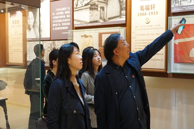 深秋的雨花台青松翠柏环绕,庄严肃穆。师生党员首先瞻仰了“初心之光”中国共产党创建时期入党的雨花英烈展,以及雨花台烈士纪念馆。“就是烧成灰,我邓中夏也是共产党员”,“为了我们最崇高的理想,我们是舍得付出代价的”……邓中夏、恽代英等一句句荡气回肠的烈士语录,一张张烈士风华正茂的图片,一组组革命烈士的事迹介绍,给党员们带来了深刻的灵魂洗礼。牺牲在雨花台的每一位革命烈士,在人生最严酷的抉择面前,都交出了令人信服的答卷,他们信仰的力量,也成为今天党员心中的精神地标。通过观展,了解到在建党初期,涌现了许多英勇不屈的雨花英烈,为追求民主与光明,一位又一位的雨花英烈用鲜血和生命谱写了壮丽的时代篇章。