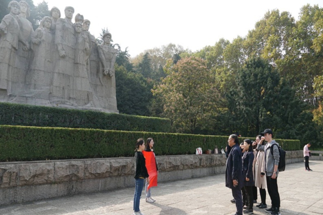 部分师生党员在学院党委书记邱建平的带领下,前往南京雨花台烈士陵园开展“追忆峥嵘岁月,共创设计未来”主题党日活动。