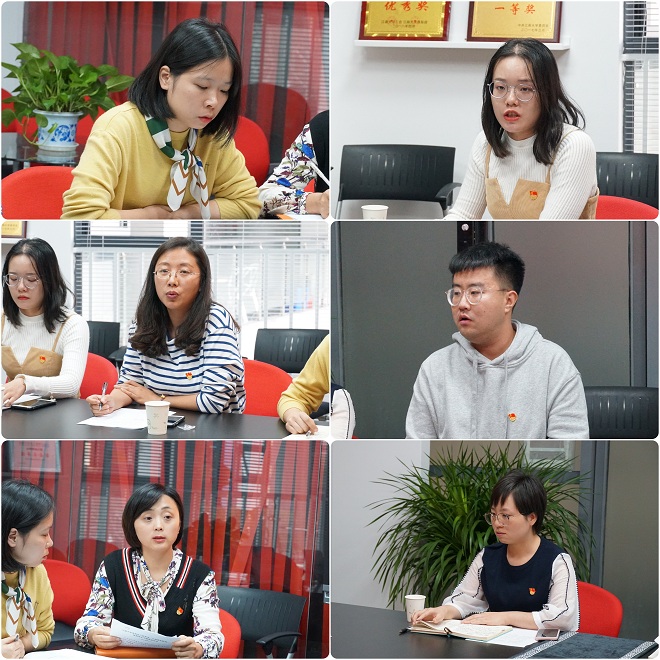 其后,辅导员代表们做主题发言。学工办主任、分团委书记陆芳从一名共青团干部的角度提出,辅导员们要努力锤炼忠诚干净有担当的政治品格,勇担职责使命、奋发干事创业,切实为党做好新时代的青年工作,她认为学院共青团工作要向“更近、更严、更实、更专”的方向深入,以“打造青年们想得起、找得到、用得着的零距离共青团”为目标努力奋进。16级辅导员吴雨琛围绕辅导员的初心和使命从“加强思想政治教育,构建成长成才思想保障;坚持问题需求导向,持续推进教育管理过程优化”两个方面进行分享,她指出辅导员们工作要有根有据、有条有理、有声有色、有血有肉。19级辅导员章琳从自身工作的体验出发,提出“建立信任关系”和“创新工作模式”是做好辅导员工作关键点,她认为辅导员工作有艰辛、有付出、有压力但是也是一次次战胜自我的收获与成长。辅导员郑倩倩、王涛、曹淑慧、林寅等也围绕自身工作分别进行思想交流。