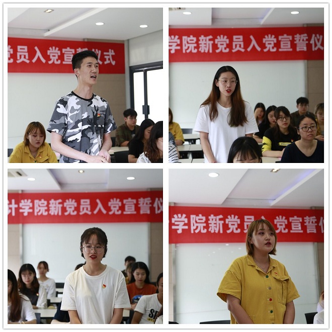 仪式开始前,由郑倩倩老师为每位新党员佩戴党员徽章,整理着装。仪式开始,全体起立奏唱国歌,现场气氛庄严肃穆。党委副书记王晖领誓,全体新党员进行宣誓。宣誓声音洪亮,铿锵有力,短短一百字的誓言是他们对党的第一个承诺,声声震耳的宣誓代表新党员对党的忠诚。接着进行了新党员交流分享环节,两名研究生党员和四名本科生党员进行分享,他们交流了自己的入党动机和考察期的努力情况,剖析了自己对党的认识,表明了自己以后努力的方向。