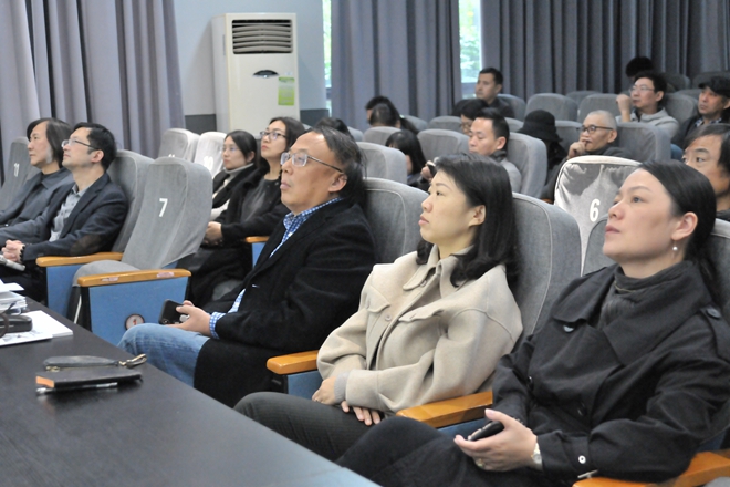 张凌浩院长在听完党课和两位老师情真意切的分享后,也谈了自己的心得,表示作为一名党员会和大家一起深刻领会新思想,进一步强化“四个意识”和党员的身份意识,求真学问、练真本领、为学院的持续发展做奋斗者。活动最后,邱建平书记结合本次党日活动主题,围绕校庆60周年中心工作,勉励党员既要认真学习新思想,把握习近平新时代中国特色社会主义思想的精神实质,用理论内涵武装头脑、指导实践、推动工作;也要传承前辈老师艰苦奋斗,爱院如家的精神,在生活学习和工作中发挥模范带头作用,增强党员队伍的创造力、凝聚力和战斗力。