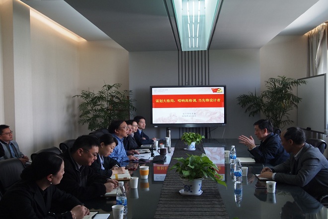 4月10日下午,校党委书记朱拓在校党委办公室主任朱飞陪同下来我院调研,主要围绕“学院党委、基层党支部运行基本情况,以及学习贯彻党的十九大精神后的工作情况”等方面进行座谈调研。参加座谈会人员有:学院党委委员、教工及学生党支部书记代表、分团委书记等。