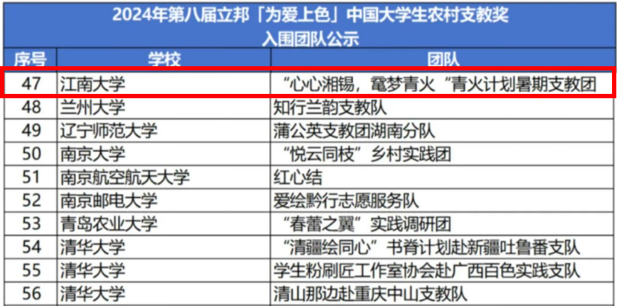 “青火计划”暑期支教团入选团中央中国大学生知行促进计划,同时入选团中央2024年关爱行动“七彩假期”志愿服务团,团队将于7月中旬赴湖南省株洲市水口镇中心校开展志愿服务活动。