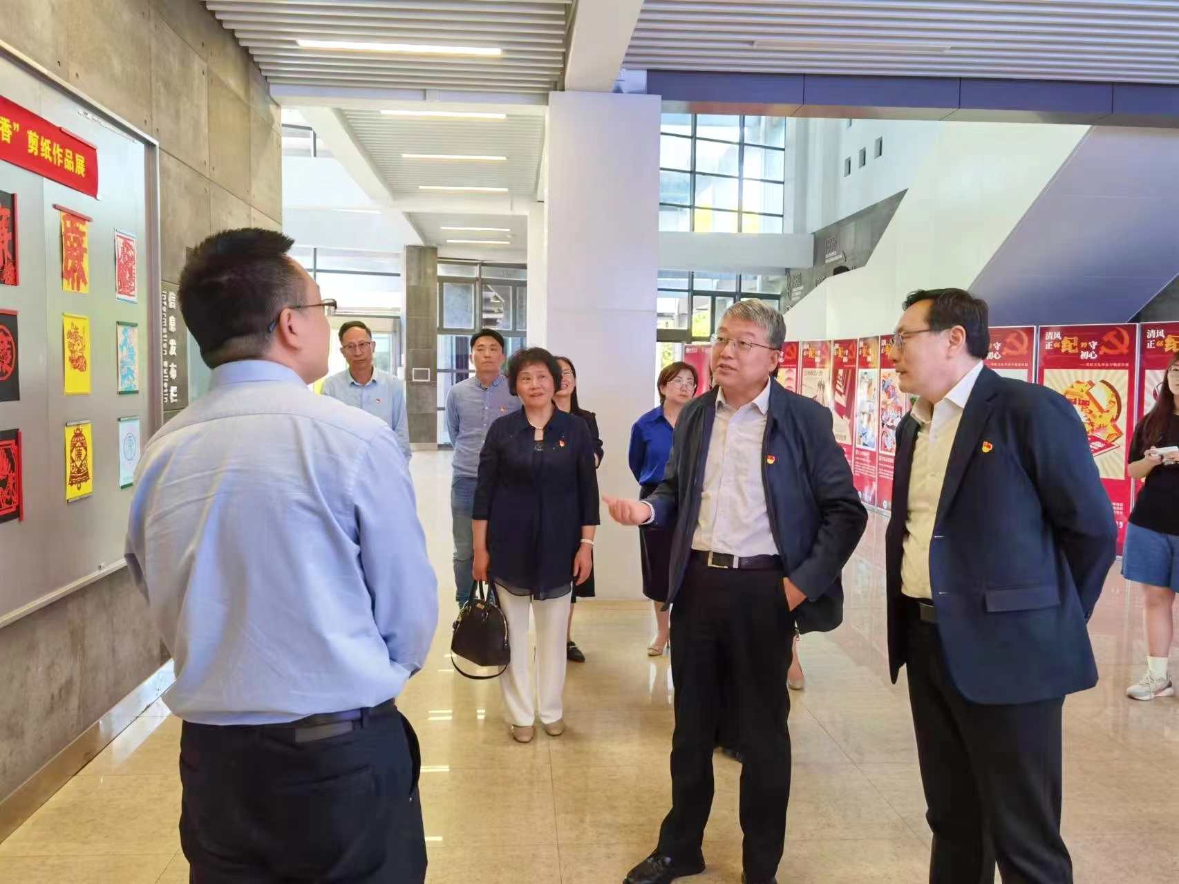 领导参观党纪文化作品专题设计展和剪纸作品展