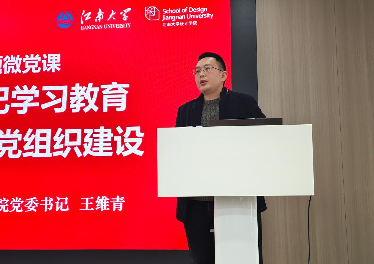 党委书记王维青为各位党员同志讲授以“深化党纪学习教育,强化基层党组织建设”为专题的微党课,他传达了习近平总书记近年来关于党的建设的重要思想,结合党纪学习教育深化、基层党组织工作规范化等,对学院基层党建工作开展作出指导和要求。他强调,党支部建设要坚持目标导向与问题导向相统一,各支部在加强标准化规范化建设的基础上,应充分挖掘支部活动的广度、深度,摒弃浮于表面的形式主义,通过发挥专业优势、聚焦重点难点问题、调动和凝聚党员积极性、总结党建品牌创建经验等,进一步推动基层党建工作提质增效,为构建新时代基层党建工作提供坚强的政治和组织保障。最后,王维青对在场的师生党支部书记、支委表达了高度的肯定,并期望能够在学业、科研、实践全方位起到先锋模范的带头作用。